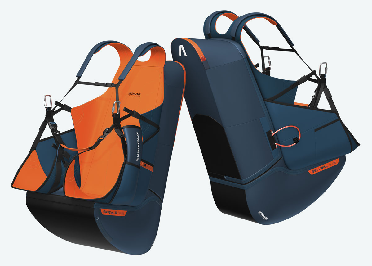 Selete para voo duplo de parapente em dois modelos, GUIDE (piloto) e GUEST (passageiro).