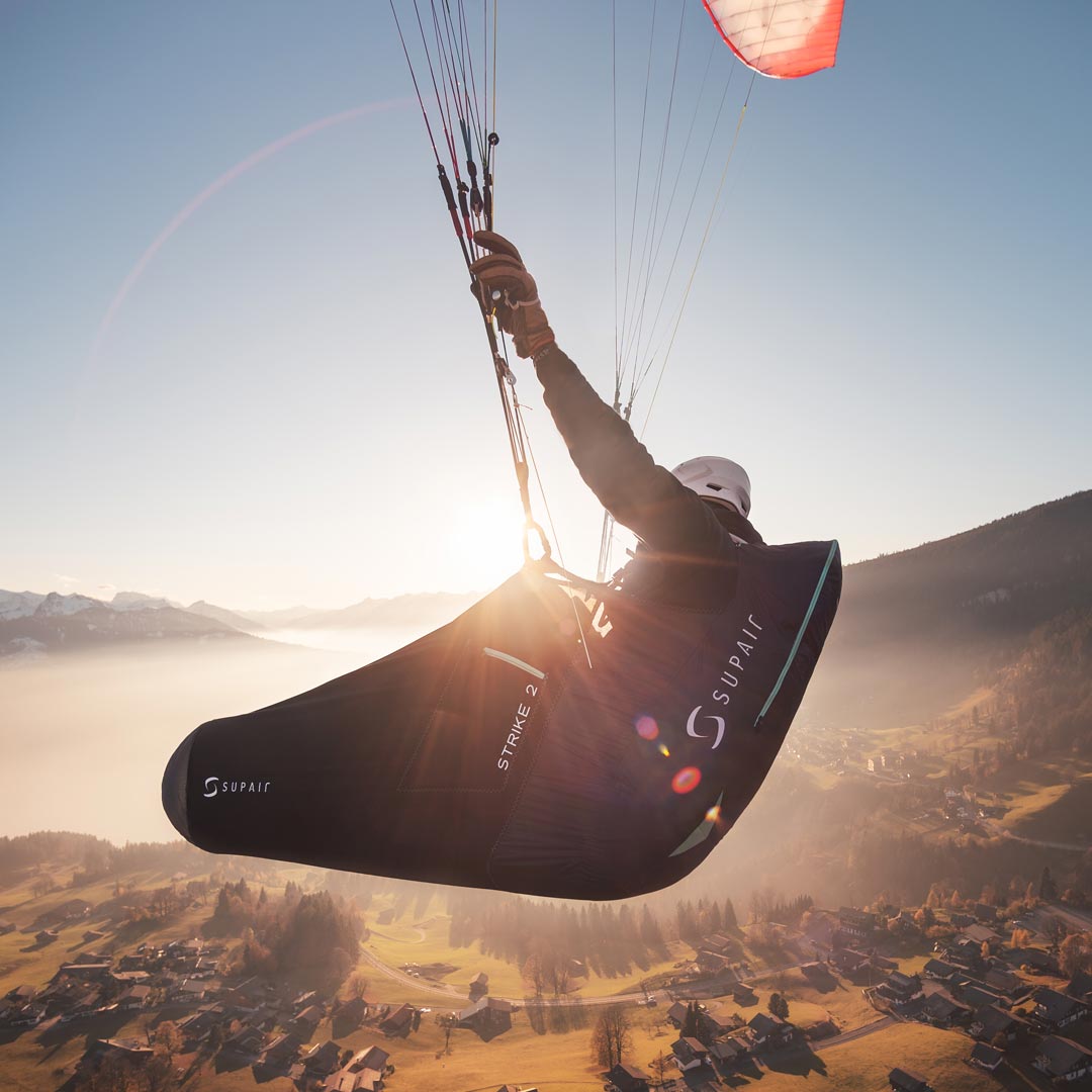 Em comparação com a STRIKE"1", é mais ergonômica, mais confortável e mais flexível graças em particular a uma proteção inflável (opcional). Uma selete projetada para pilotos de competição e de Hike&Fly. Também pode servir como selete principal para pilotos de XC em busca de reduzido peso e volume em seu equipamento.
